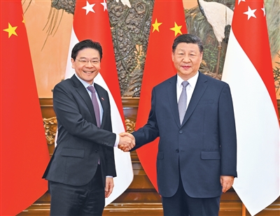 习近平强调,中新要牢牢把握两国友好大方向,始终从战略高度和长远角度看待和发展中新关系,确保航向不偏、动力不减。要筑牢中新友好政治基础,支持彼此核心利益和重大关切,以更高水平政治互信服务两国关系发展。中方欢迎新方继续深度融入中国发展,双方要深入推进共建“一带一路”合作,打造数字经济、绿色发展、人工智能等领域标志性成果,推动重大项目提质升级,续写高质量合作新篇章。要鼓励两国人民常来常往,深化人文交流合作,让中新友好更加深入人心。中方始终认为,和平、发展、合作、共赢的时代潮流不可阻挡,世界不能重拾霸权主义,不能被拖回丛林法则。中方愿同新方一道,站在历史正确一边、站在公平正义一边,共同倡导平等有序的世界多极化、普惠包容的经济全球化,推动世界走向和平、安全、繁荣、进步的光明前景。