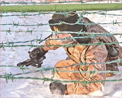 边防战士在极寒天气下开展战斗运动训练。 |