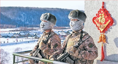 边防战士戍边执勤,面罩凝霜。 |