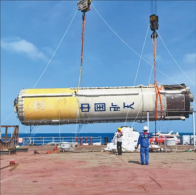 图为从海上打捞回收的火箭一级箭体。 王玉林摄(新华社发)