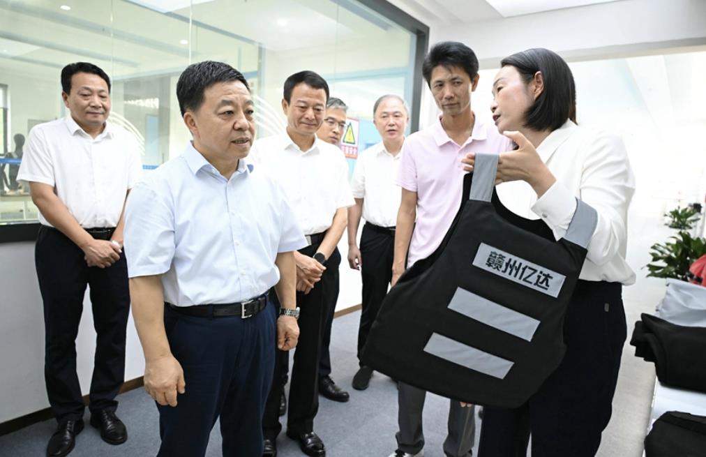 叶建春来到上犹玻纤全产业链共享智造应用中心和溢联科技有限公司,了解车用控火毯、防刺服、头盔等安防用品的研制生产情况,并先后在泡小燕食品和森泰竹木调研食品深加工和竹产业高质量发展工作。他强调,要立足自身实际,找准细分赛道,完善产业生态,形成特色鲜明的县域经济发展路径。要强化产业链协同意识,引导全新优质产品催生新的消费需求,在更多场景、更大市场得到应用。
